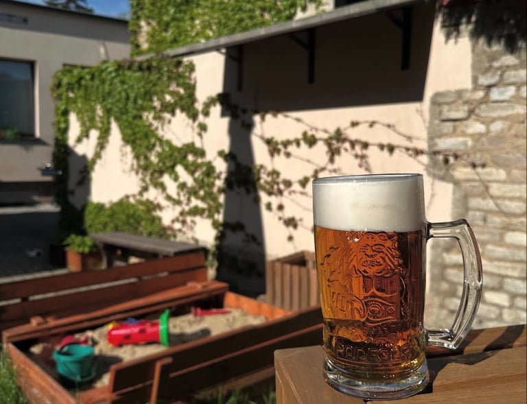 Prostorná venkovní zahrádka ve vnitrobloku.